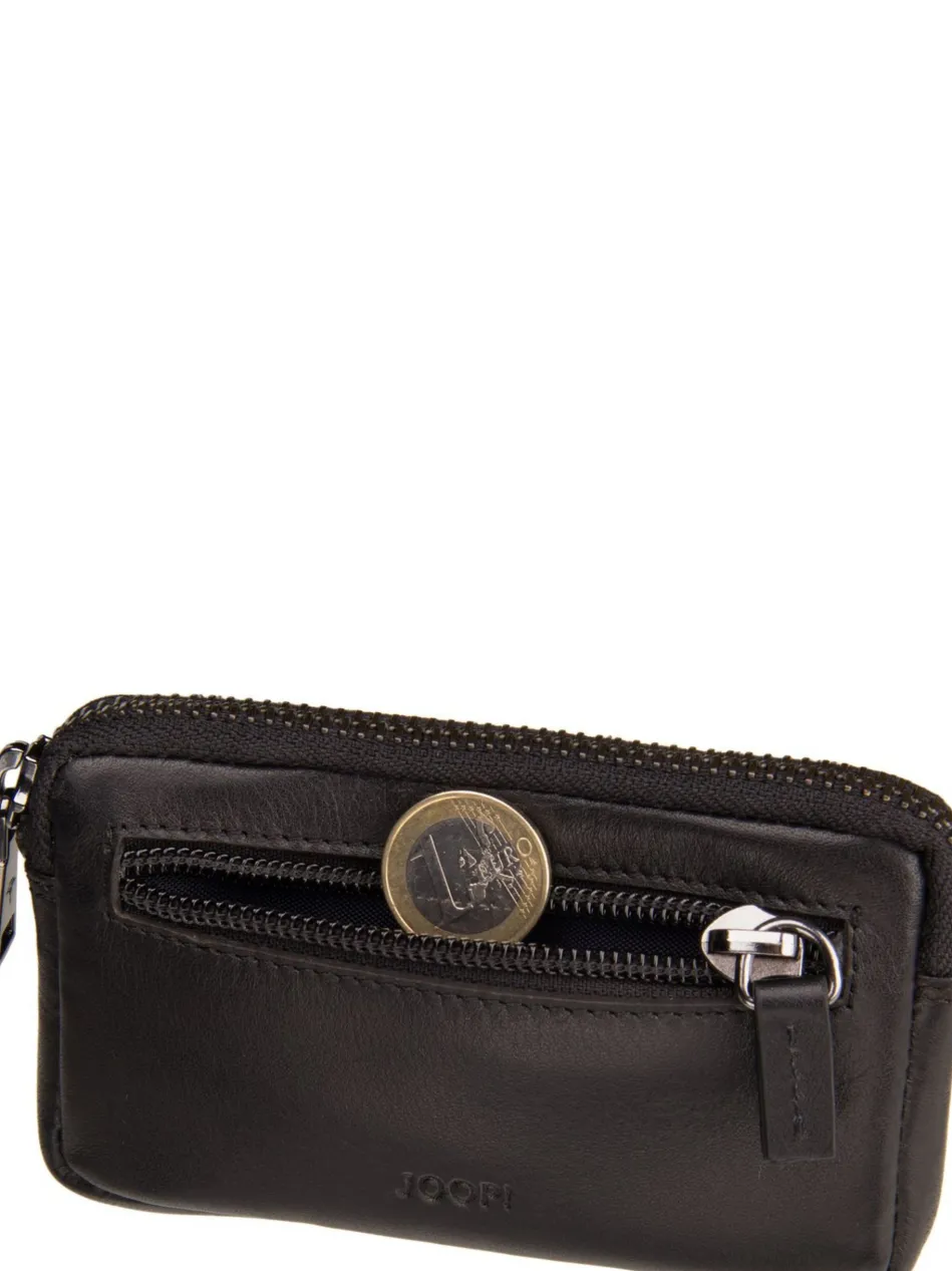 Edles Schlüsseletui mit Reißverschluss von Joop. Mit 2 Schlüsselringen, einem Innen- und einem Außenfach. Aus hochwertigem Leder.
