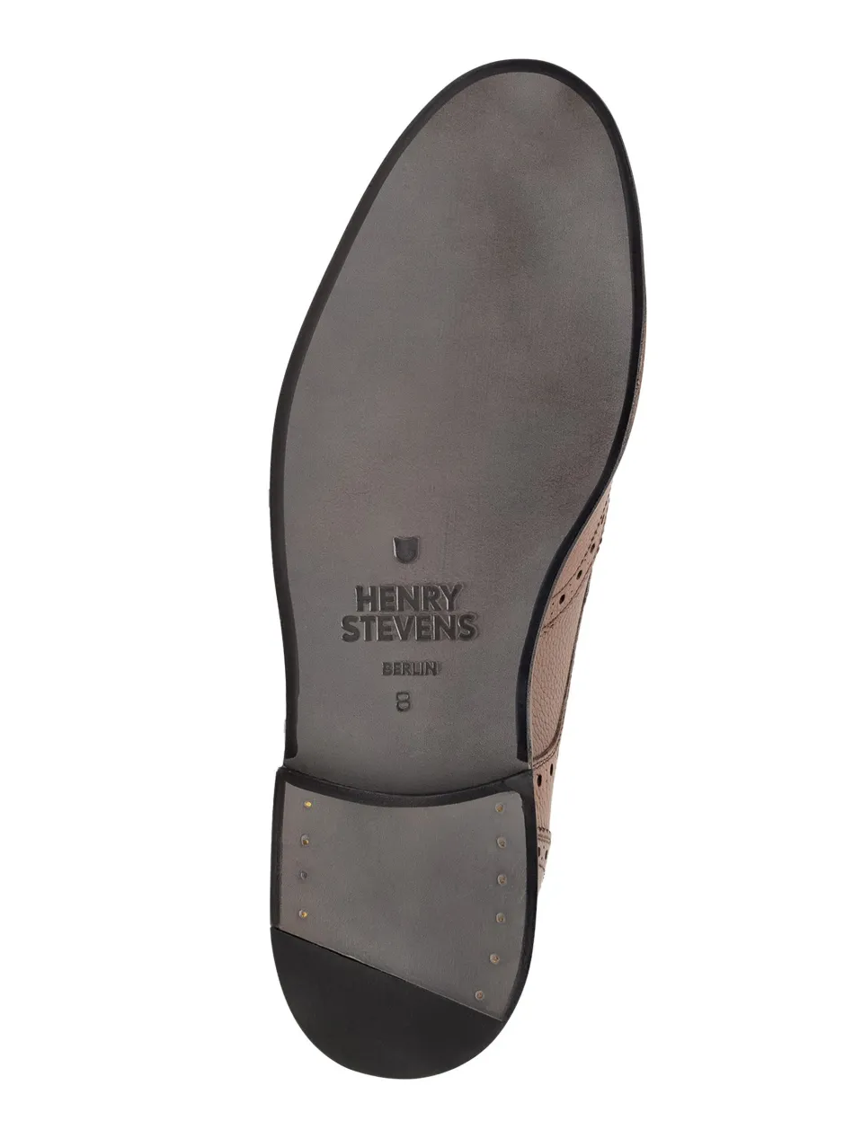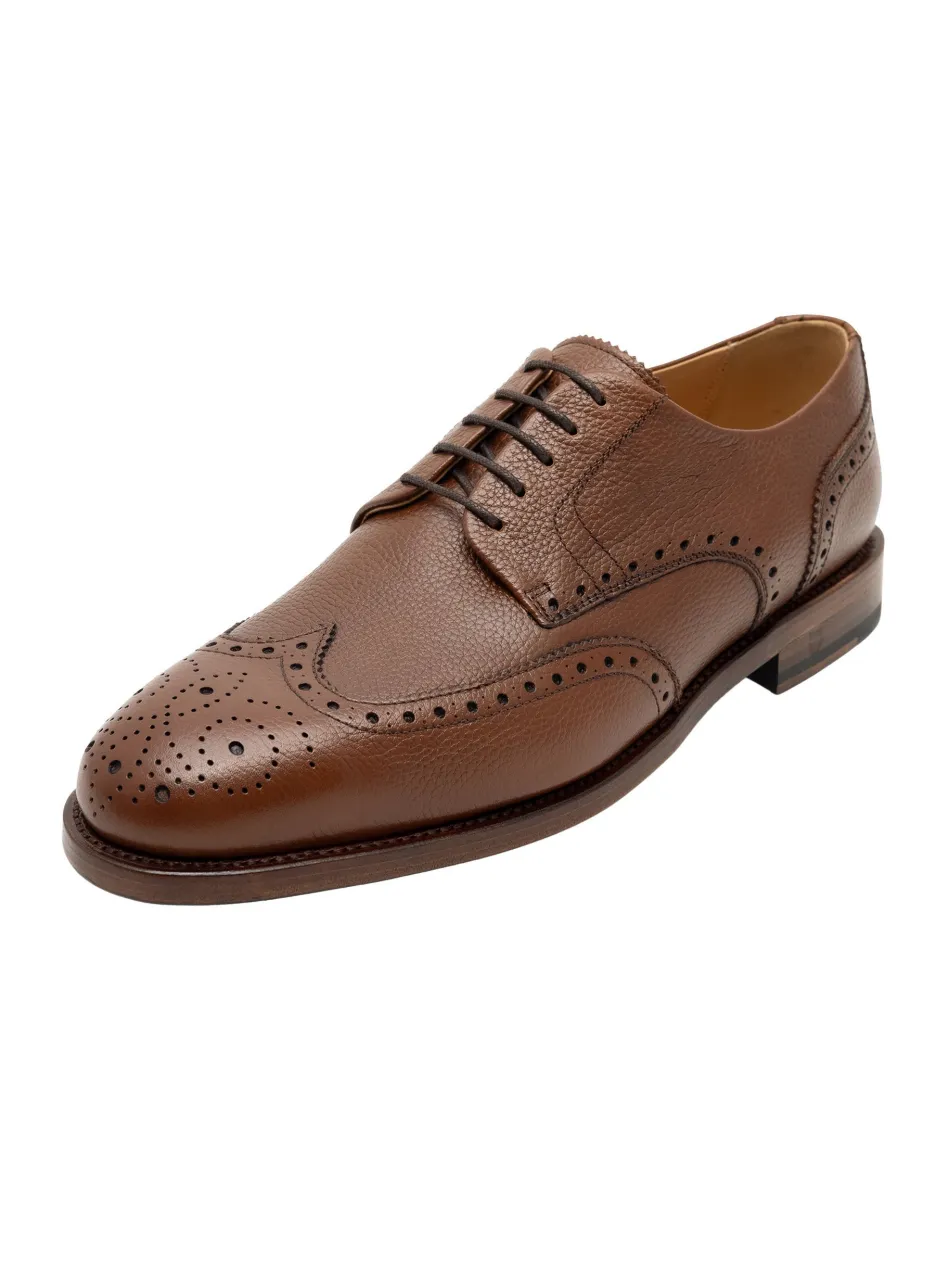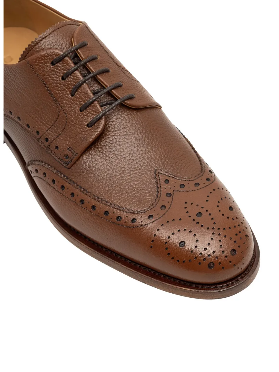 Der Winston Full Brogue-Derby ist mit seinem rahmengenähten Design und dem geprägten Kalbsleder ein hochwertiger und langelbiger Klassiker. Das vegetabil gegerbte Innenfutter sorgt für optimalen Tragekomfort, während die Ledersohle eine stilvolle Note verleiht. Ein zeitloser Begleiter für das ganze Jahr.