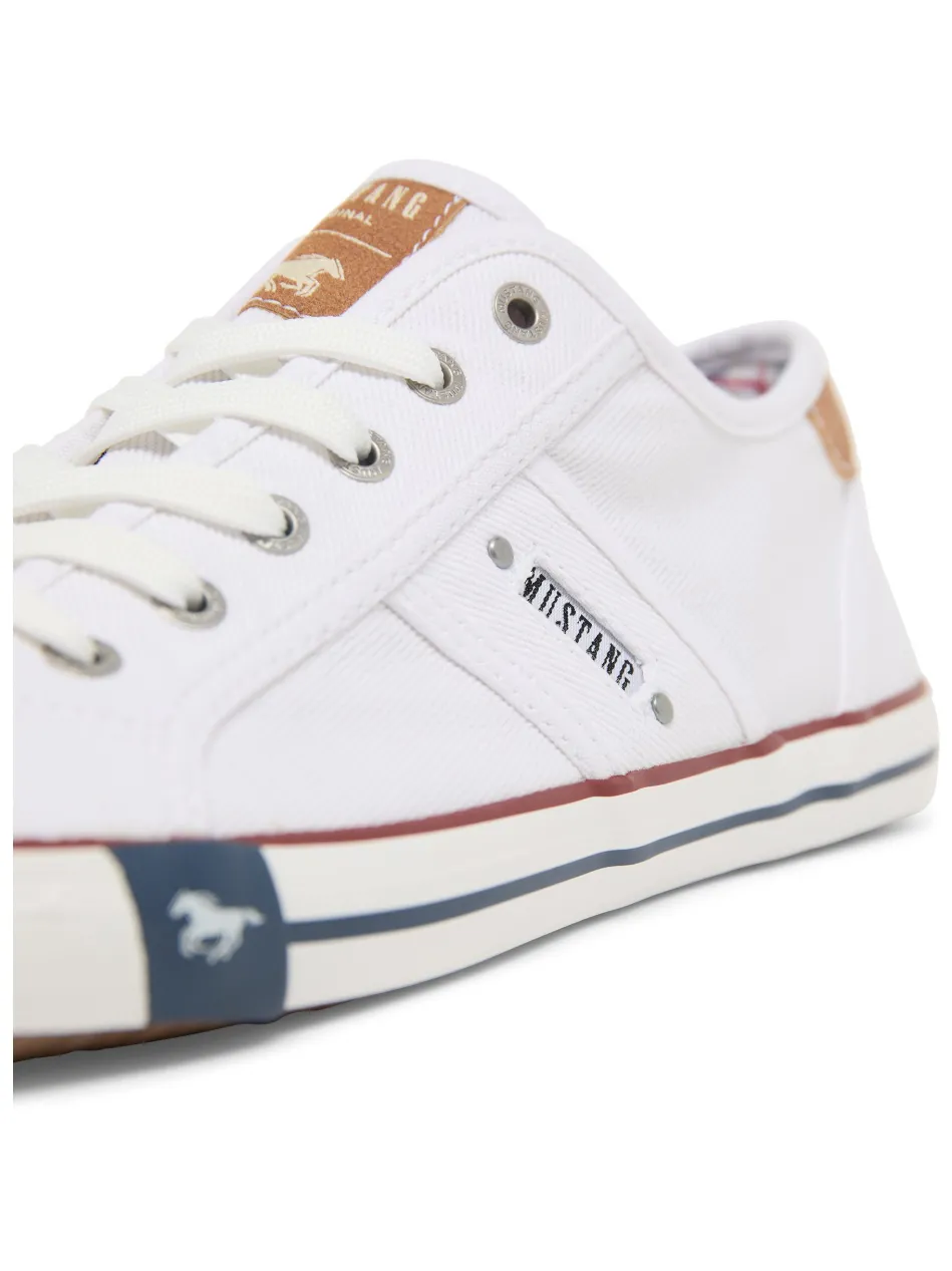 Komfort und Design, bei diesen Sneakers von Mustang wurde an alles gedacht. Das Obermaterial aus Textil und Lederimitat sowie diverse Label-Applikationen verleihen dem Modell einen modischen Look. Im Inneren sorgt eine softe Textilausstattung für einen angenehmen Tragekomfort. Dank der Ösenschnürung bietet der Schuh einen optimalen Sitz. Der Allrounder passt sowohl zum Casual-Outfit mit Shirt und Jeans oder zum Business-Look mit Rock und Bluse.