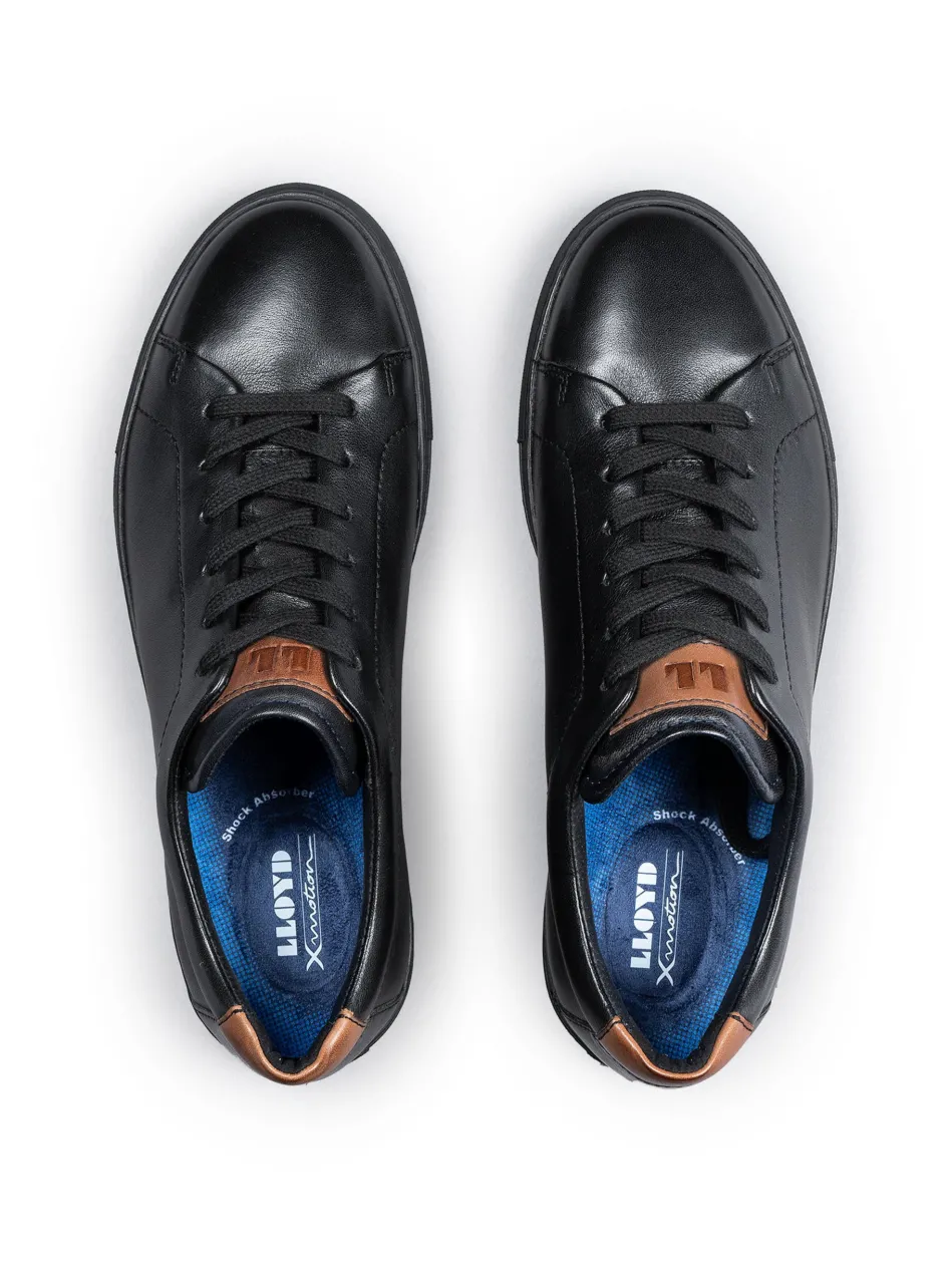 Der LLOYD Low Top Sneaker aus weißem Glattleder überzeugt durch eine besonders leichte Sohle. Ein sportliches Auftreten ist mit dem Sneaker gegeben. Für eine elegante Optik sorgt das glatte Leder. Die Sneaker sind komfortabel und atmungsaktiv mittels Leder- und Textilfütterung. Durch die X-Motion-Technologie ist das Modell mit einer Laufschuhtechnik ausgestattet. Die Sohle sorgt für Stabilisierung und Schonung der Gelenke.