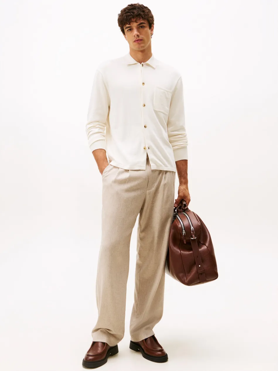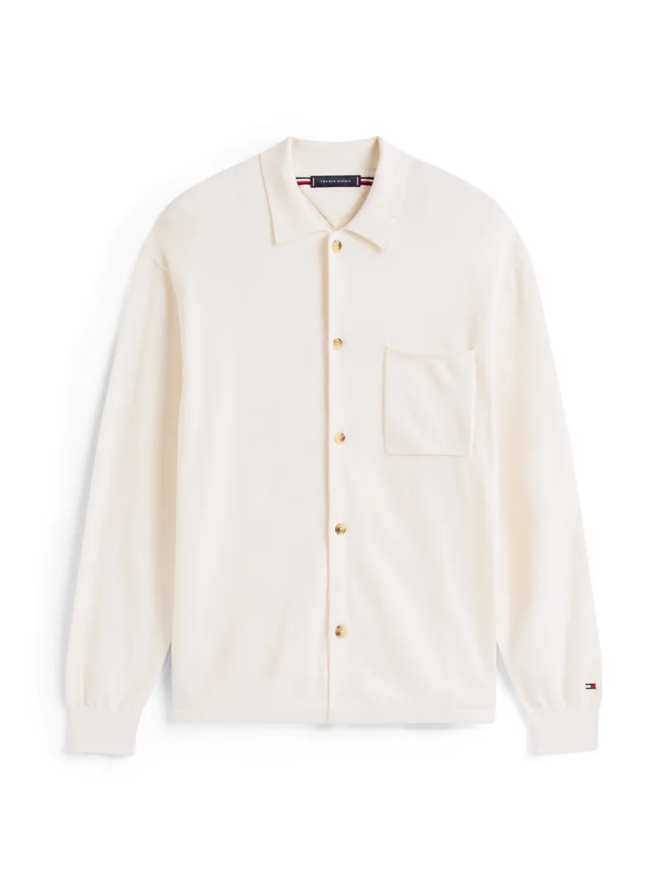 Die Strickjacke von Tommy Hilfiger besticht durch das raffinierte Overshirt-Design und mit Kentkragen und Brusttasche und erweist sich als stilvolles Layering-Piece.