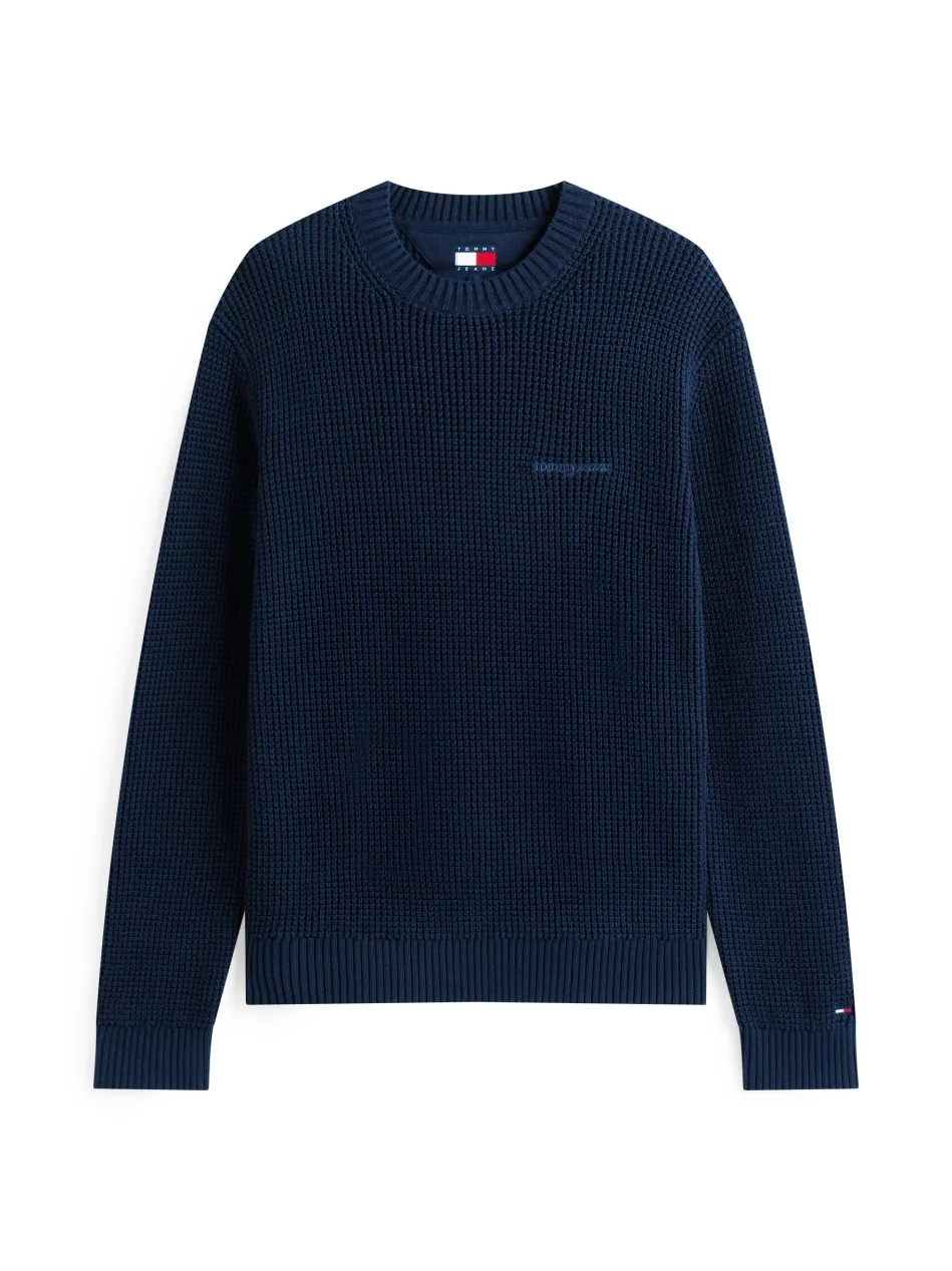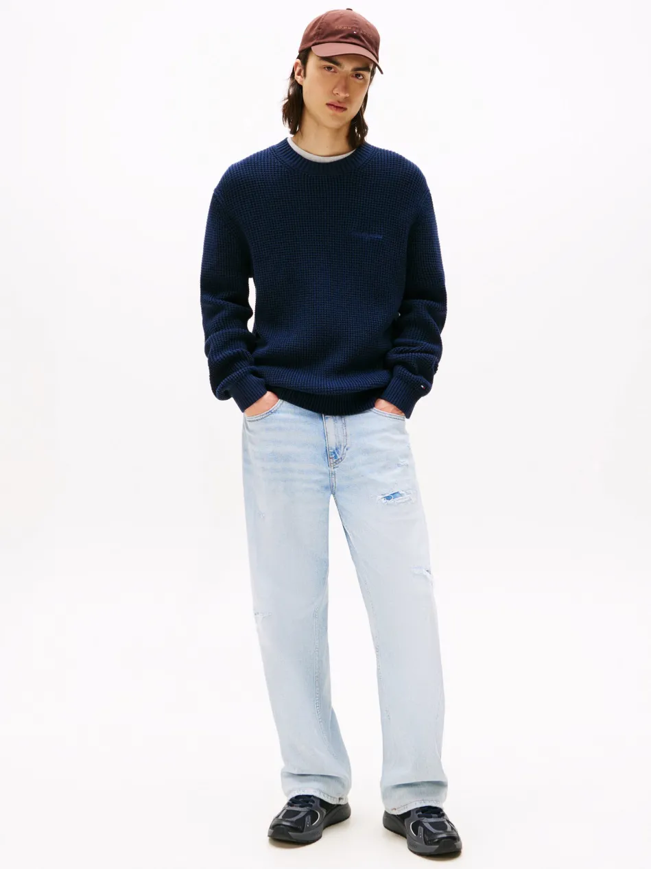 In moderner Waffel-Optik mit dezenten Signature-Details erweist sich der Strickpullover von Tommy Jeans als stilvoller Allrounder für entspannte Looks.