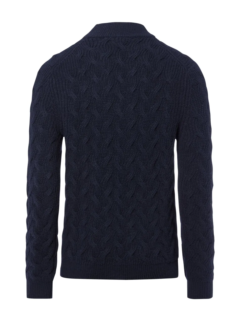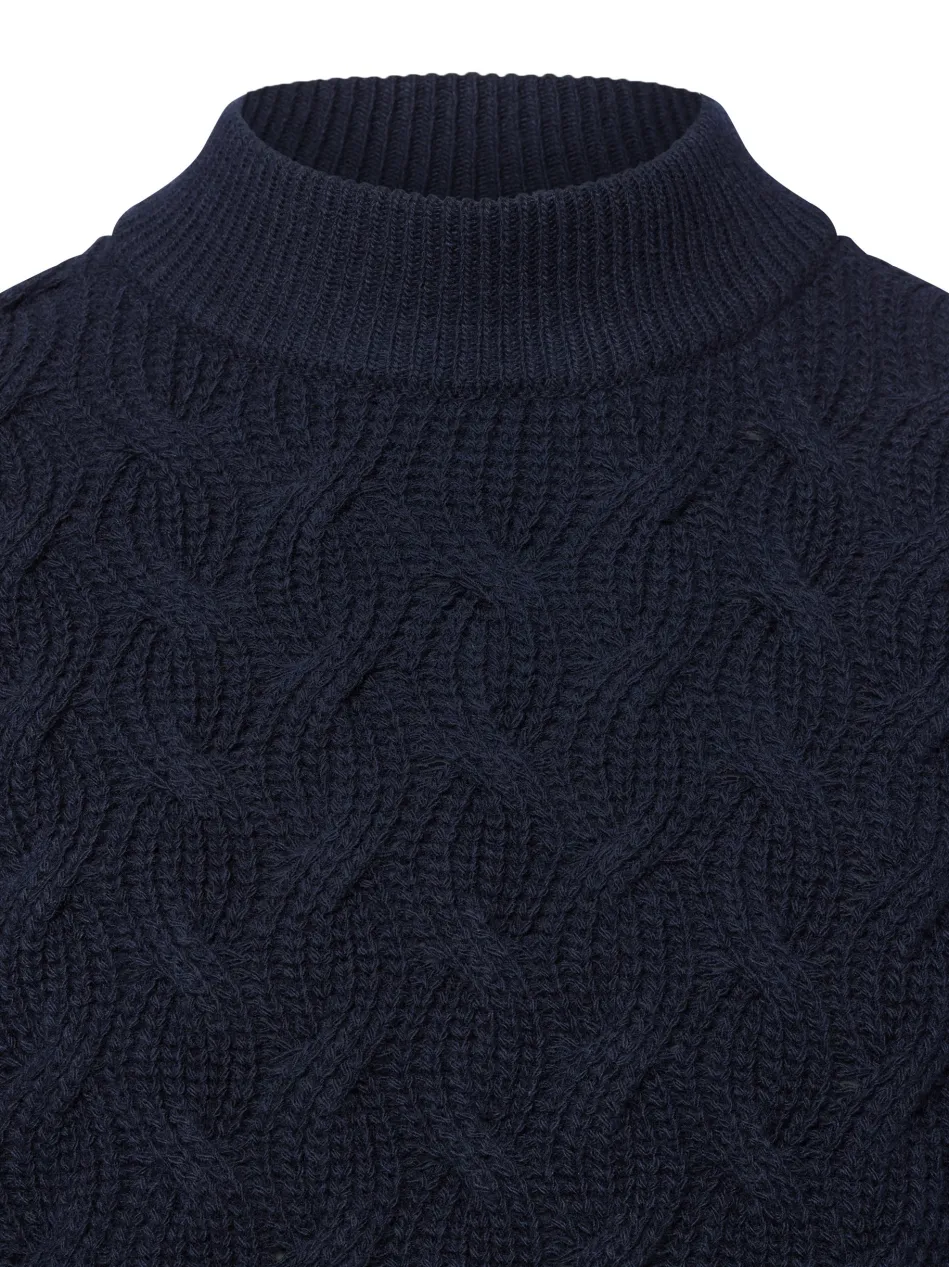 Modernes Zopfmuster zeichnet den Strickpullover von OLYMP SIGNATURE als wärmendes Essential für die kalte Saison aus – aus reiner Wolle.