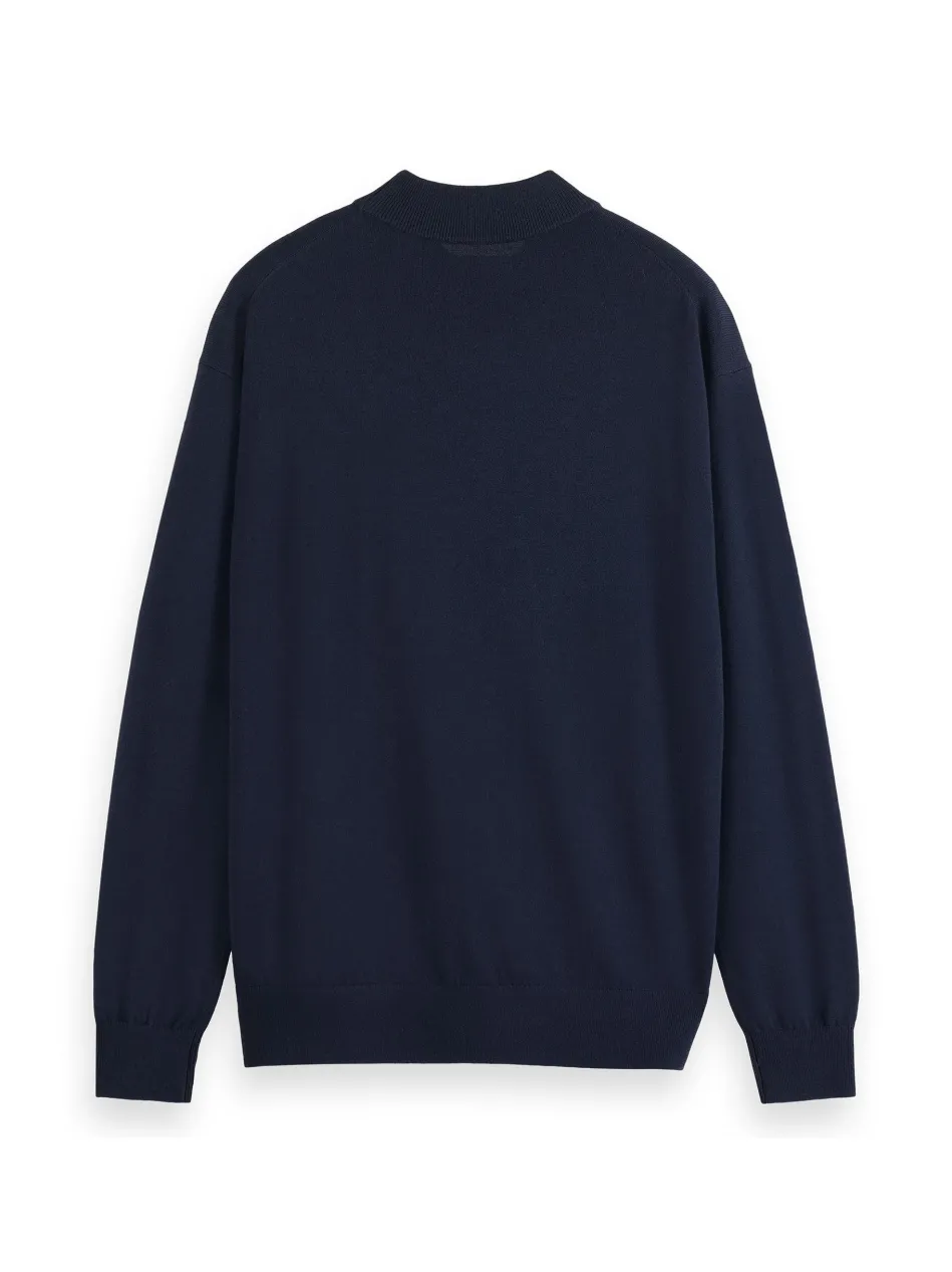 Einfarbiger Herren Pullover mit Mock Neck von der Marke SCOTCH&SODA. Aus der Serie Core mit dropped shoulder Schnitt. Mit Bündchenabschluss.