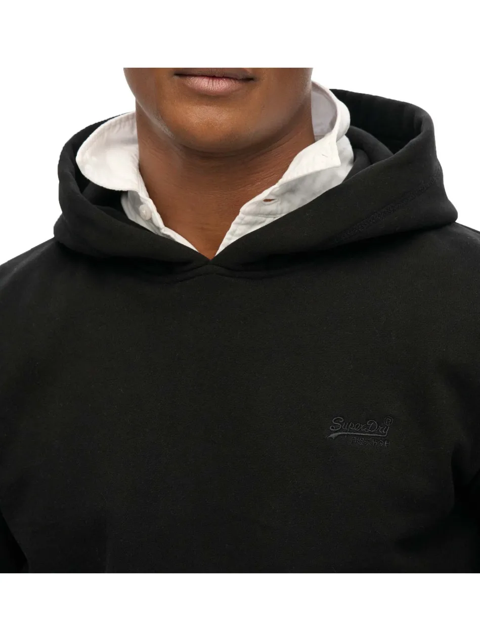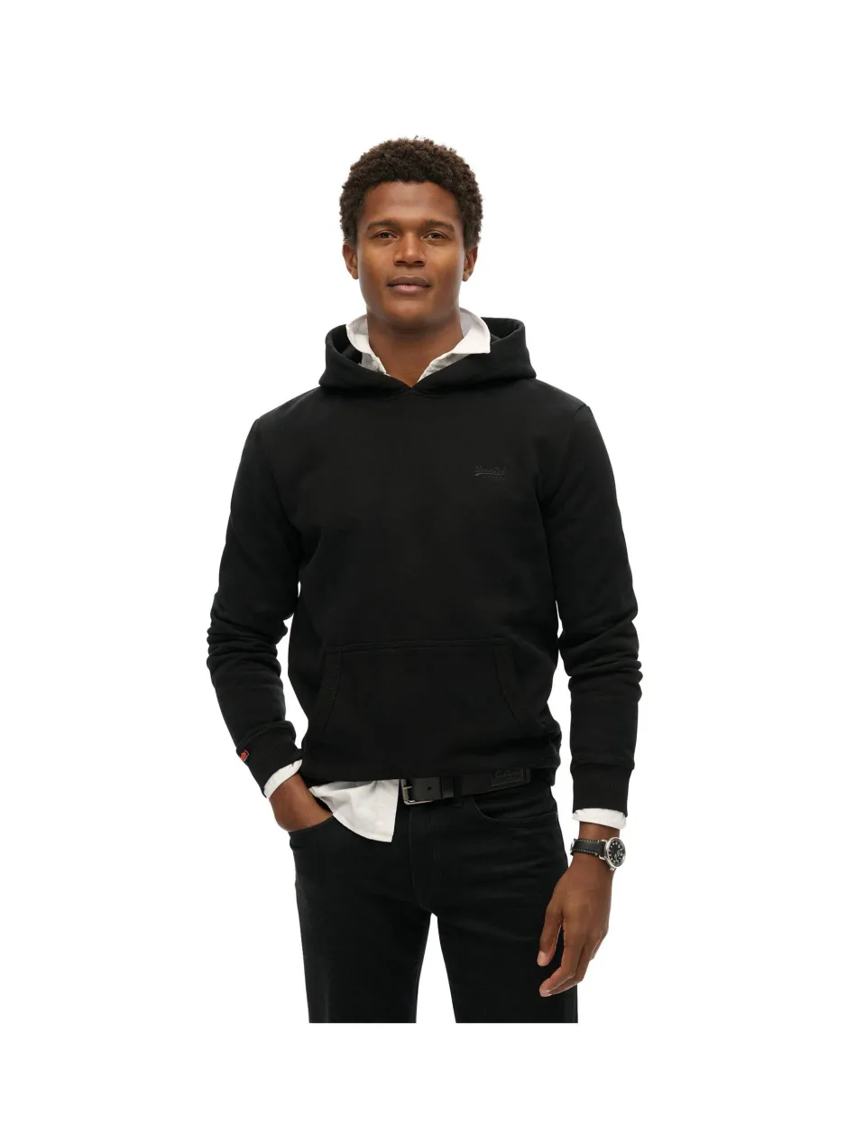 Einfarbiger Hoodie für Herren von der Marke Superdry. Essential Pullover mit Kapuze und kleinen Logo Details. Praktische Kängurutasche.