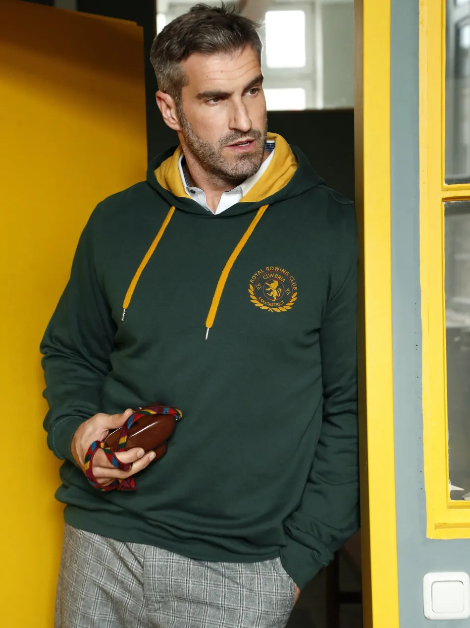 - Farblich abgesetzte Kordel und Kapuzenfutter