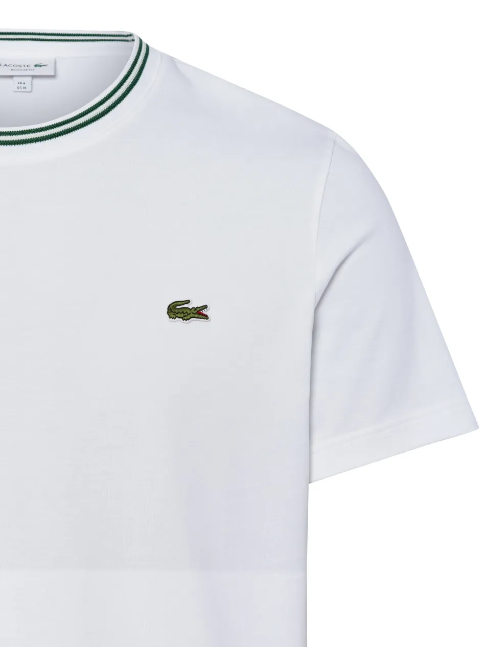 Der gerippte Ausschnitt im Streifen-Design verleiht dem Lacoste T-Shirt ein sportives Update und wertet den Basic-Stil gekonnt auf.