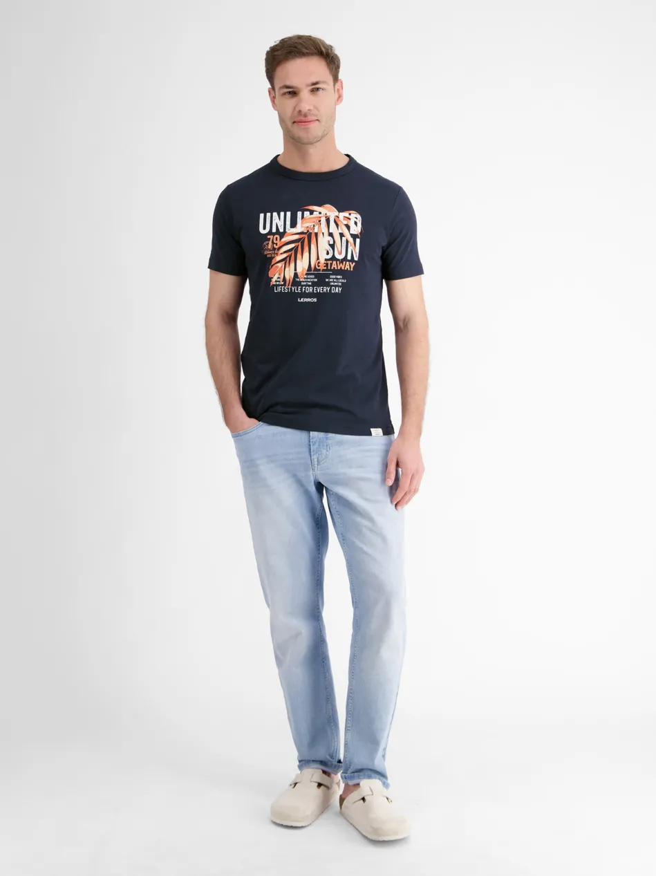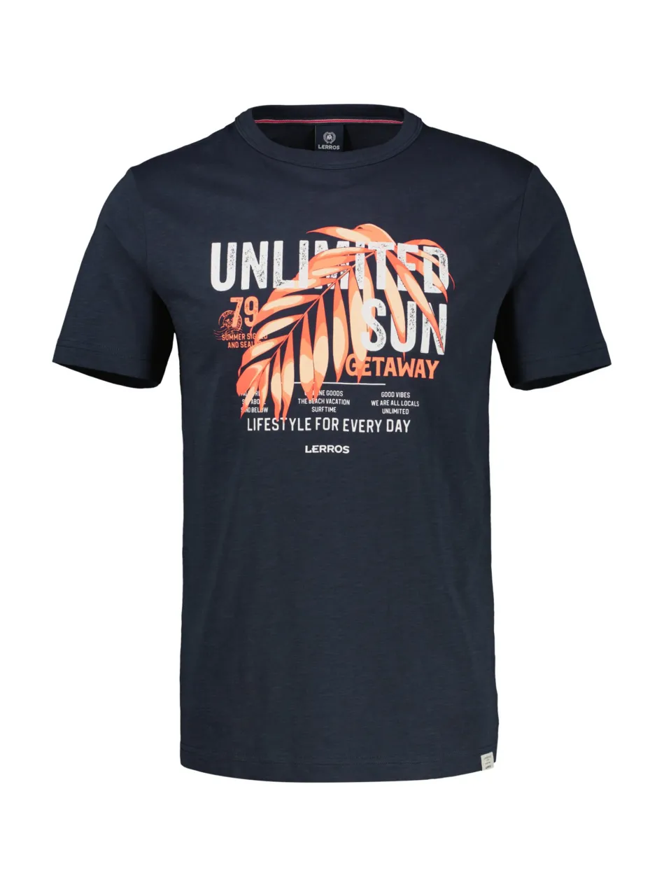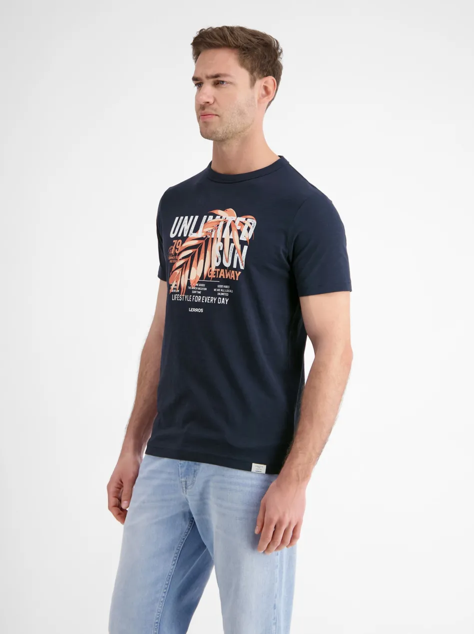 Dieses LERROS T-Shirt aus leichter Struktur-Baumwollqualität ist sommerlich-locker gewebt und bildet so ein perfektes Zusammenspiel aus Komfort und Stil. Die Jerseyware sorgt für ein angenehm leichtes Tragegefühl und eine edle Optik. Der Brustprint setzt ein modisches Highlight.