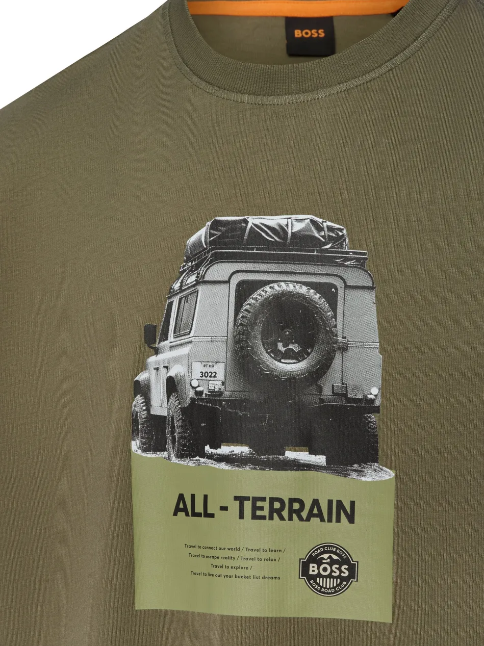T-Shirt Wagon von BOSS Orange aus reiner Baumwolle mit auffälligem Foto-Print, Logo-Flag in der Seitennaht und doppelt vernähten Abschlüssen – bequem und stylisch.