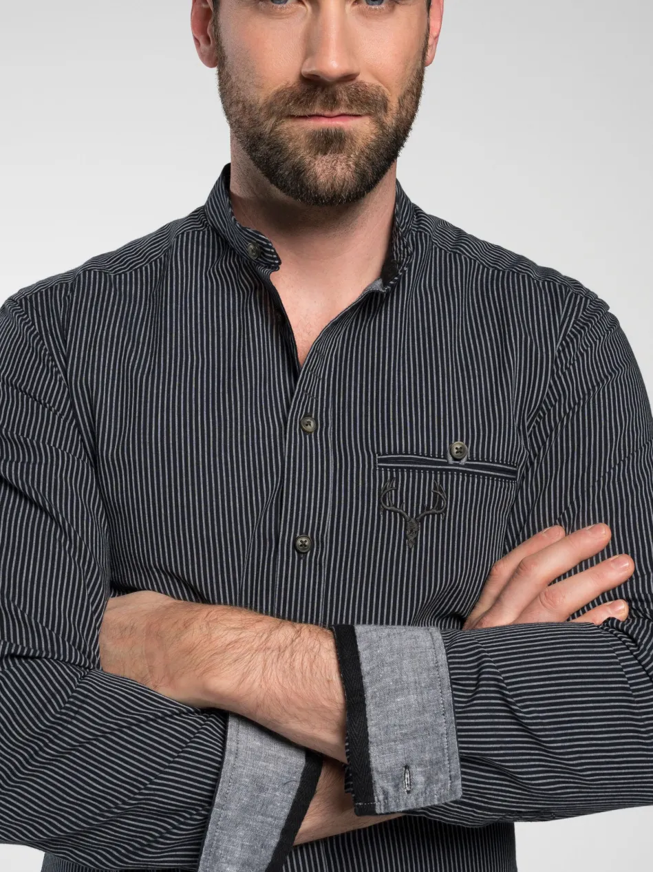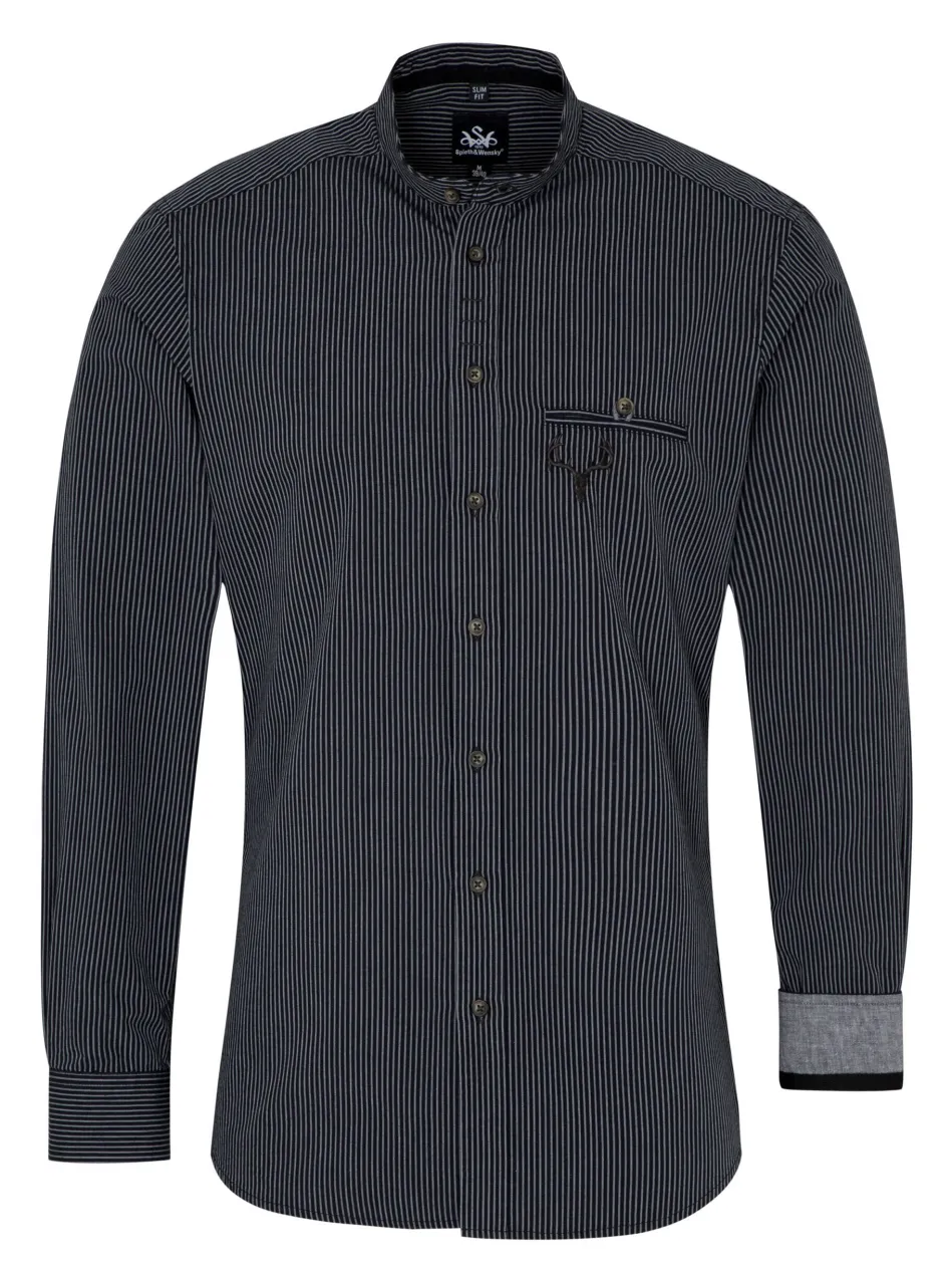 Mit dem Trachtenhemd ‚Fellen‘ von Spieth & Wensky verleihen Sie Ihrem traditionellen Outfit einen modernen Look. Dabei zeichnet sich das Hemd durch seinen Streifen-Look und seinen modernen Details aus. Dazu gehört neben dem modernen Kragen auch die farblich abgehobenen aber dezenten Knöpfe oder die Armmanschette. Dennoch besitzt das Hemd auch einige Details, wie die Hirschkopfstickerei, was es auch zur idealen Ergänzung zum Trachtenoutfit macht.