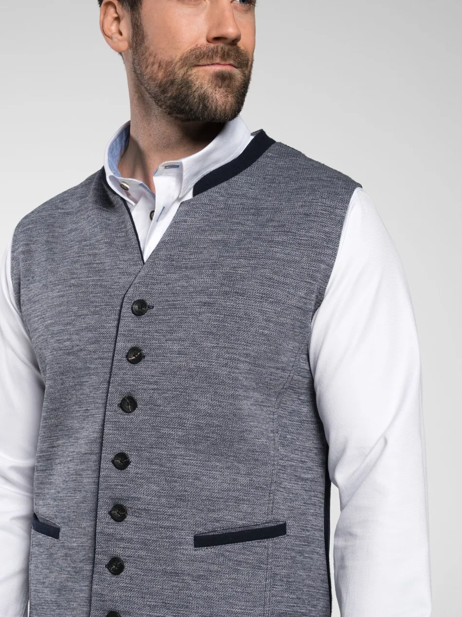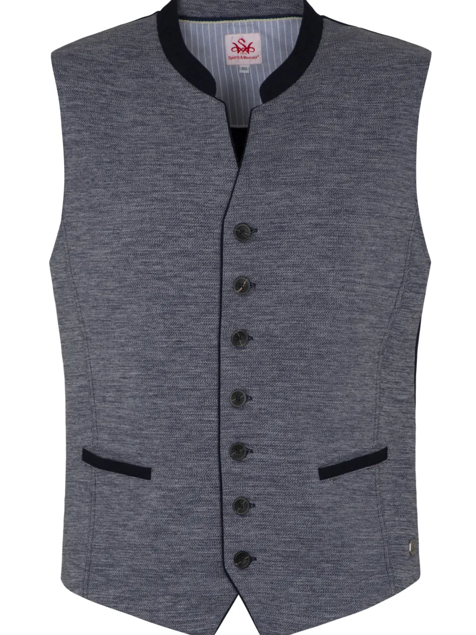 Verleihen Sie mit dieser Trachtenweste von Spieth & Wensky Ihrem Trachtenoutfit einen neuen Stil. So zeichnet sich die Weste durch einen dezenten und modernen Look aus. Das geschieht vor allem durch ihre Piqueoptik sowie den farblich hervorgehobenen Taschen, dem Kragen oder auch der Knopfleiste. Die Weste ist damit eine ideale Ergänzung für die moderne Trachtengarderobe.
