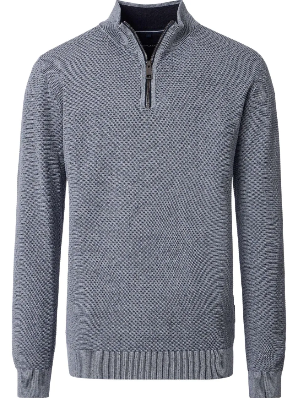 Zeitlose Eleganz trifft auf modernen Komfort bei diesem Strick-Troyer, der mit seiner feinen Struktur eine edle Optik bietet und zugleich angenehm wärmt. Der hohe Kragen mit Reißverschluss verleiht dem Look eine sportive Note und sorgt für vielseitige Stylingmöglichkeiten. Ob solo oder über einem Hemd getragen – der Troyer ist perfekt für stilvolle Outfits an kühlen Tagen geeignet.