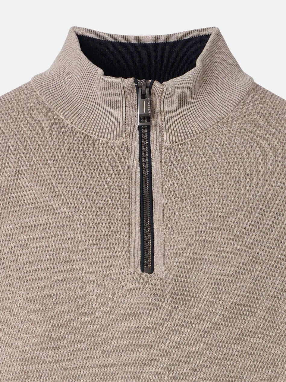 Zeitlose Eleganz trifft auf modernen Komfort bei diesem Strick-Troyer, der mit seiner feinen Struktur eine edle Optik bietet und zugleich angenehm wärmt. Der hohe Kragen mit Reißverschluss verleiht dem Look eine sportive Note und sorgt für vielseitige Stylingmöglichkeiten. Ob solo oder über einem Hemd getragen – der Troyer ist perfekt für stilvolle Outfits an kühlen Tagen geeignet.