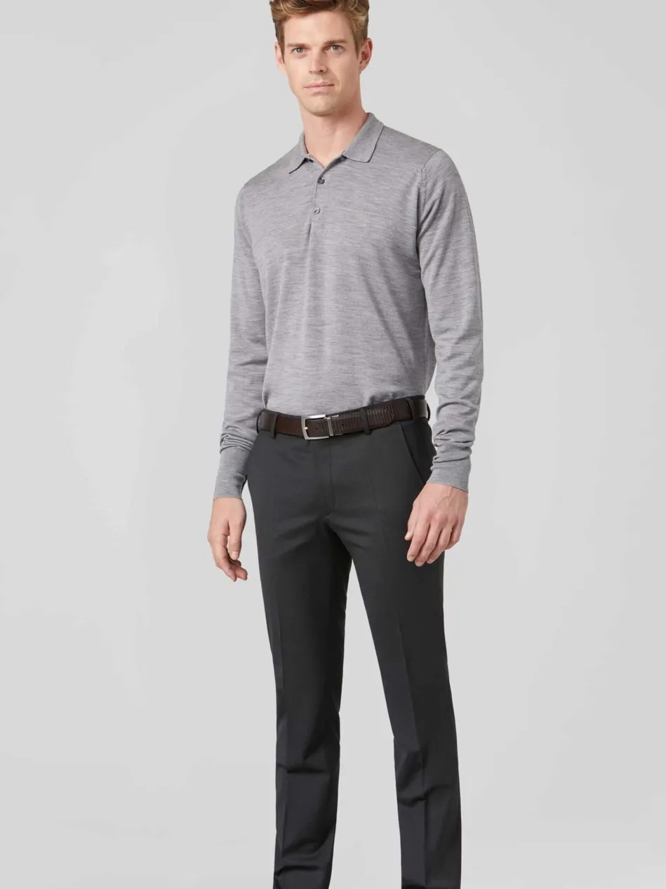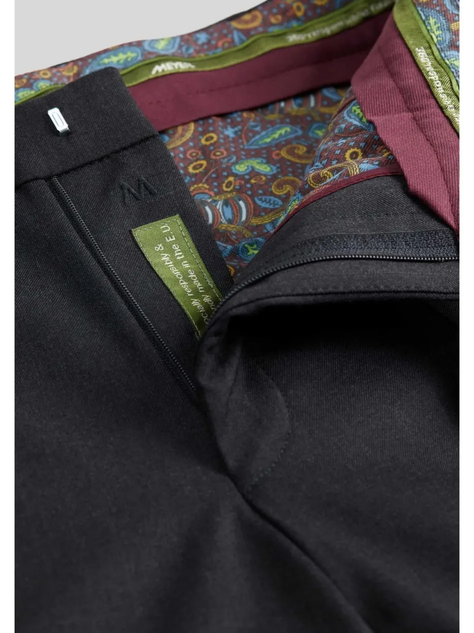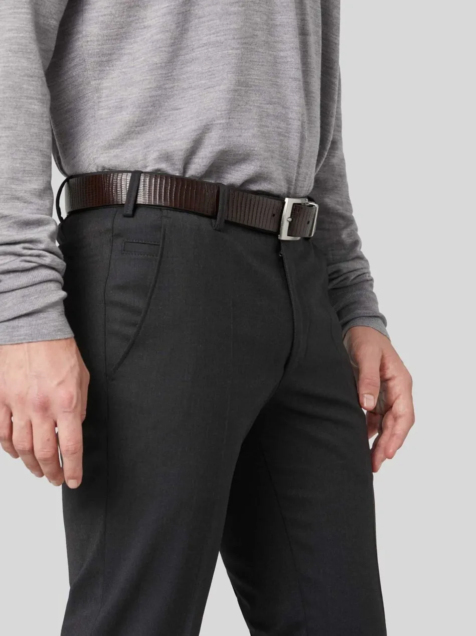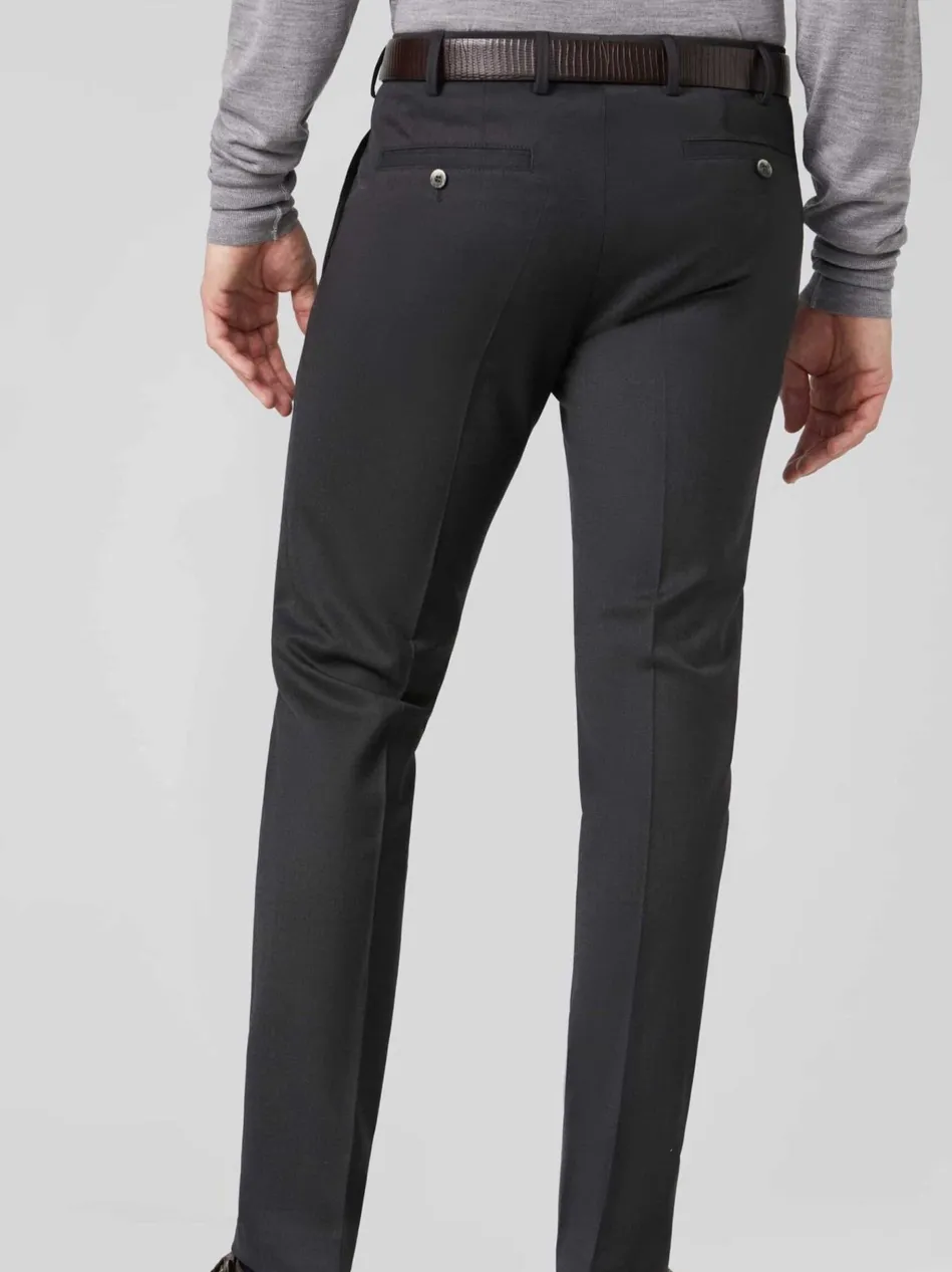 Diese komfortable Herrenhose gewinnt vor Allem durch ihre schlanke Silhouette. Das spezielle Wollgemisch ist pflegeleicht und für die Haushaltswäsche geeignet. Durch den besonderen Stretchbund, der hier verarbeitet wurde, gibt die Hose bei Belastung mehrere Zentimeter nach und ist somit besonders bequem. Das abgestimmte Taschenfutter und die hochwertigen Knöpfe runden das wertige Gesamtbild ab.