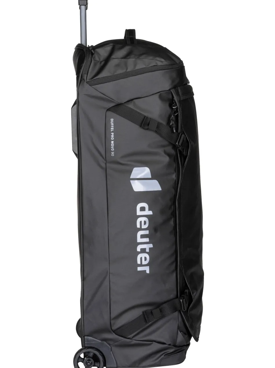 Diese Rollreisetasche von Deuter besteht aus wasserabweisendem Polyestergewebe, bietet ganze 90 Liter Stauraum und ist somit ideal für ausgedehnte Reisen aller Art.
