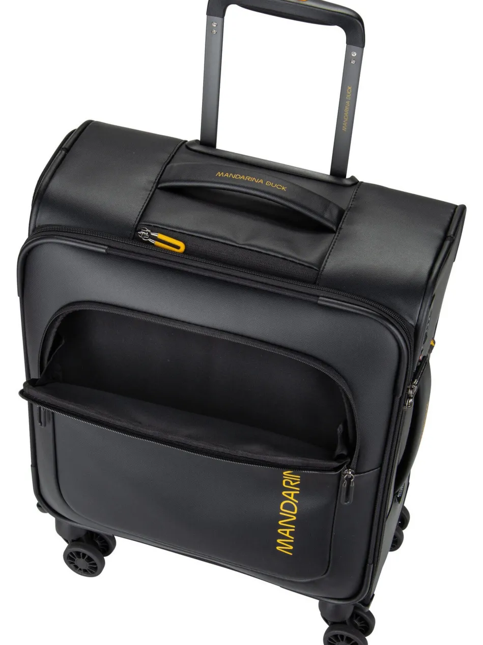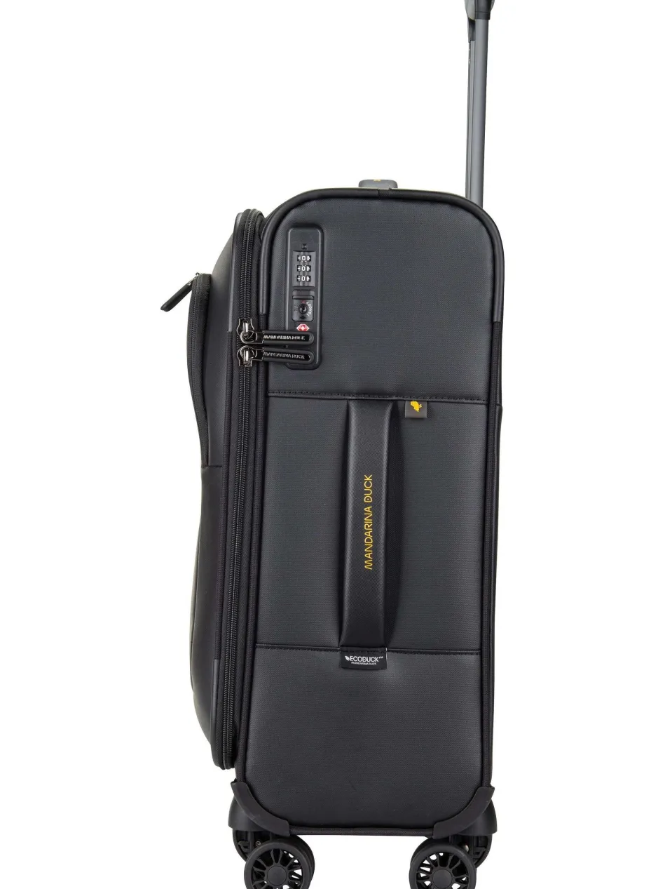 Dieser trendige Koffer von Mandarina Duck besteht aus recyceltem Polyester mit einer wasserabweisenden Beschichtung und überzeugt mit moderner Optik.